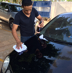João Vitor Rainho, 23 anos, mora na cidade de Presidente Prudente, é proprietário do estacionamento rainho. Estou muito contente com a qualidade e desempenho do Protect Dry. É muito pratico usar o produto. Antes eu tinha um problema grande pois molhava muitos lugares onde os clientes transitavam, causando transtornos. Agora utilizando o Protect Dry, eliminei grande parte da água que utilizava, me trazendo economia, e uma boa qualidade na limpeza dos veículos.